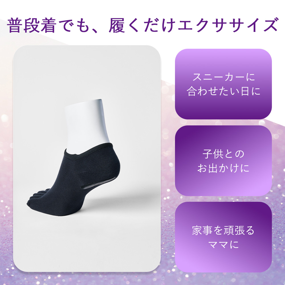 | 商品説明 | 履くだけでエクササイズできる靴下 理学療法士が開発したインソールの理論をと入り入れた履くだけで姿勢をサポートする機能性靴下です。 |