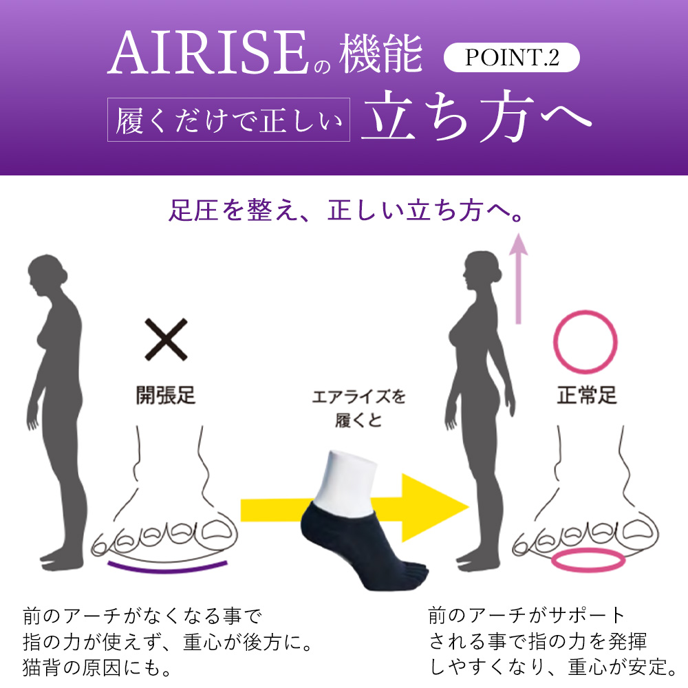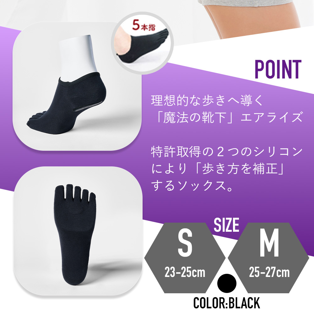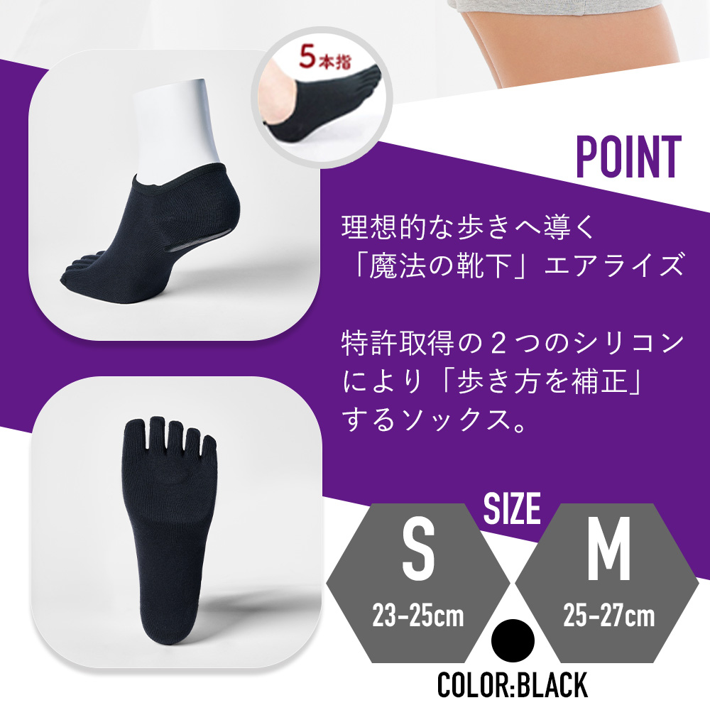 エアライズ バーナップシリーズ NEW Open toe type 正規品 ソックス 靴下 ブラック パッド内側タイプ 黒 シリコンアーチパッド付 5本指インナーフットカバー S /Mサイズ 旧エアライズ ストリート AIRISE BURN UP ニューオープントゥータイプ Street BJC GMAKe