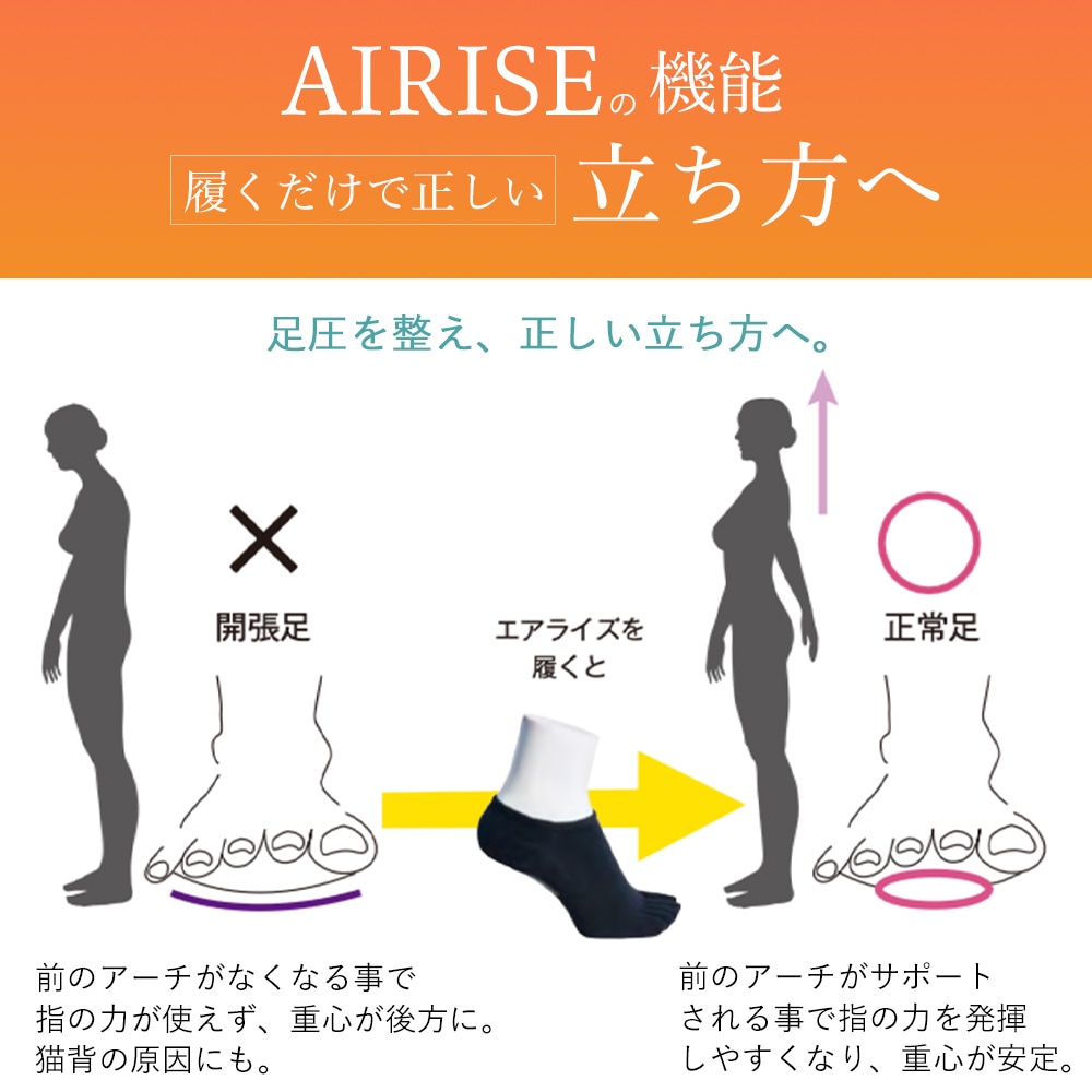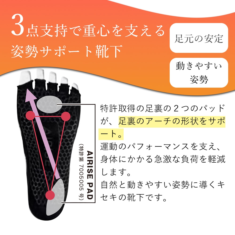 エアライズ バーナップシリーズ NEW Fitness type 正規品 ソックス 靴下 ブラック パッド内側タイプ 黒 シリコンアーチパッド付 5本指フットカバー S /Mサイズ AIRISE BURN UP ニューフィットネスタイプ BJC GMAKe